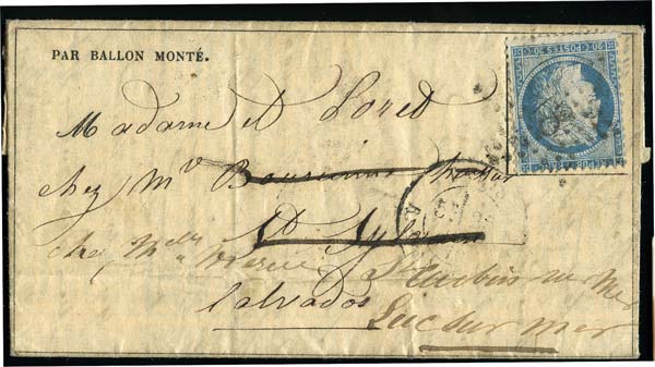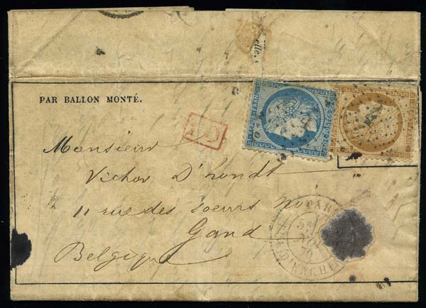 -Ballon Poste-, n° du 31 octobre (papier saumon). Dallay n°2, cote: 90 euros. |