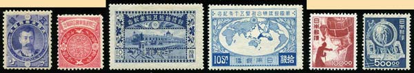 1884-1903: Bonne collection y/c n°46 obl. et 47 * (Faucons 1 W. et 2 W. de 1903) + bureaux japonais sur feuilles Y. et T. TB lot. |