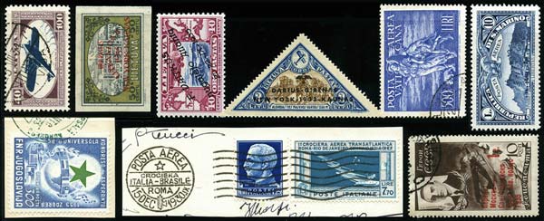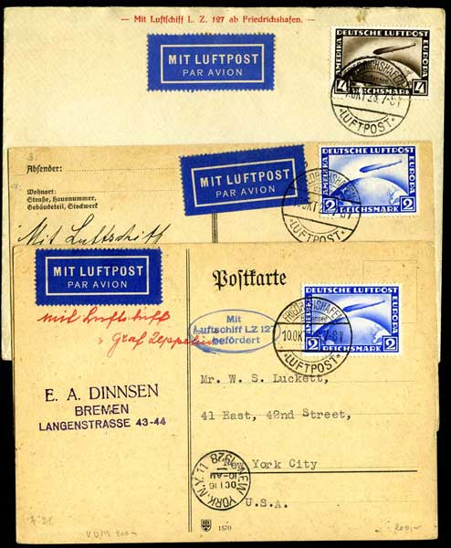 1921-1937: Belle collection de plis de Poste aérienne des 1ères liaisons, 4 lettres affranchies PA1, 2 ou 3, 8 lettres affranchies avec PA7, 8 ou 9, nombreuses valeurs Zeppelin,... Excellent lot à examiner. |