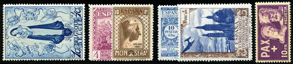 "MADONE": Splendide collection bien présentée en 27 albums contenant des milliers de timbres et centaines de plis de toutes époques. Nombreux timbres et séries rares dont Montserrat d'Espagne ou Grande Orval de Belgique,... collection spécialisée du timbre de France "Notre-Dame de Paris" de 1934 avec essais, nuances,... nombreux plis intéressants dont censure d'Espagne, bonnes valeurs de Sarre, une quinzaine de précurseurs (aux environ de 1850) avec tampons en noir de différents motifs religieux et envoyés en franchise de différents Etats Italiens,... Lot important à examiner avec beaucoup d'attention. |