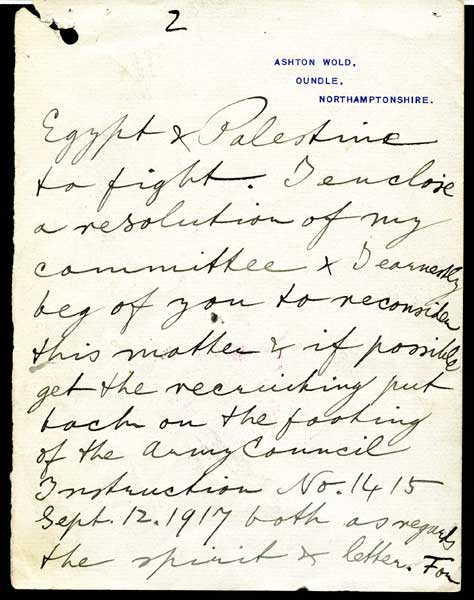 Rothschild: 2ème page d'une lettre autographe et signée Rothschild de 1918 concernant les relations entre l'Egypte et la Palestine. Texte intéressant et important. Rare. |
