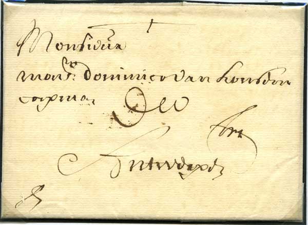 1684- Pli d' "Amsterdam 27 mars" à destination d'Anvers. Port: "d10" (deniers). Superbe. |