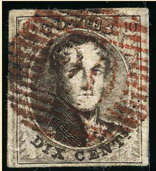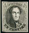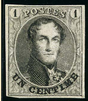 N°13E1 (cat. Balasse), essai en noir sur papier épais vergé du 1 centime. TB. Certificat Kaiser. |