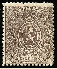 N°25 -5 c. brun-, légère trace de pli oblique sinon TB. |