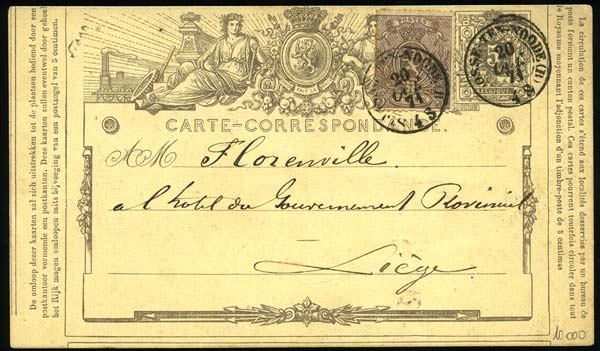 EP n°1 de 5 c. avec n°25 -5 c. brun- en affr. complémentaire envoyé de St Josse-ten-Noode à Liège le 20/10/71. Rare et TB. |