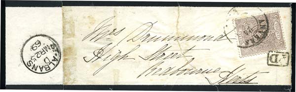 N°25 -5 c. brun- (TB) sur une bande d'imprimé de deuil du 24 mars 1863 d'Anvers à destination de St Albans (GB) avec griffe PD encadrée, bande légèrement déchirée. Rare et B. |