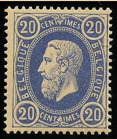N°31 -20 c. bleu-, neuf sans charnière. TB centrage. COB. 375 euros + centrage. Certificat Soeteman. |