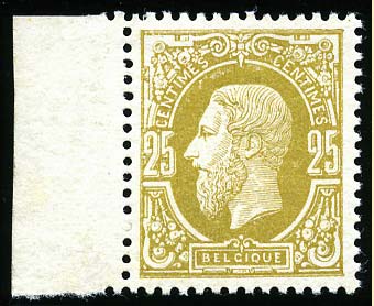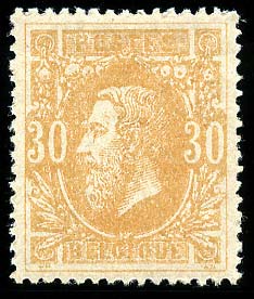 N°33 -30 c. ambre-, neuf sans charnière. Superbe. Certificat Soeteman. Centrage parfait. COB. 190 euros. |