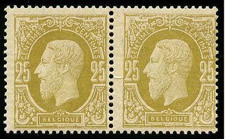 N°32 -25 c. bistre-olive-, en paire (un ex. ** et un ex. *). TB. COB. 675 euros. |
