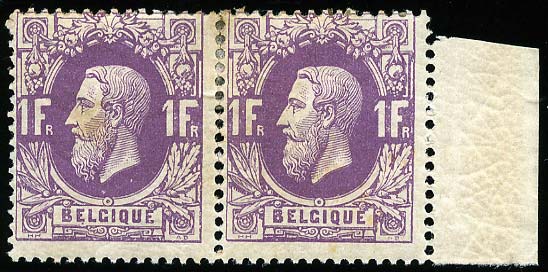 N°36 -1 fr. mauve- en paire avec b. d. f. (un timbre avec rousseur et l'autre avec adhérence). B. |