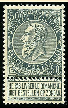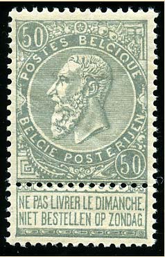N°63 -50 c. gris pâle-, superbe centrage. Certificat Soeteman. COB. 210 euros. |