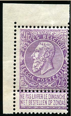 N°46 (3), 50 et 52 en paire coin de feuille avec "Dépôt 1880" (1 ex. ** et 1 ex. *). Superbes. COB. 320 euros. |
