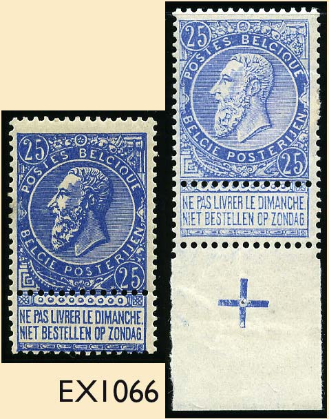 N°75a -25 c. bleu laiteux-, paire b.d.f. gauche + N°75 -25c. bleu-, très bien centré. Superbes. COB. 100 euros. |