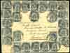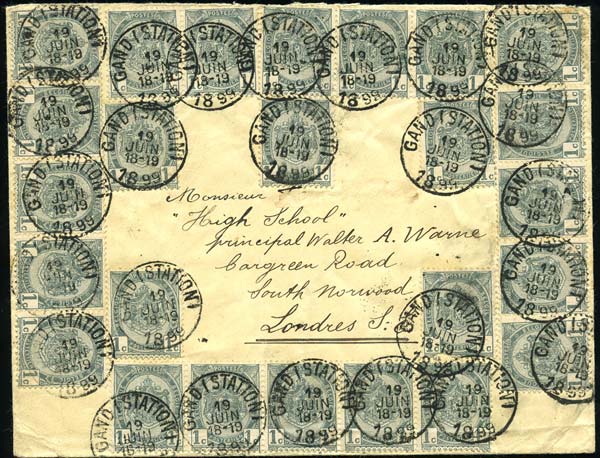 N°53 -1 c. gris-, 25 timbres sur une lettre du 19 juin 1899 de Gand à Londres. TB. |