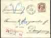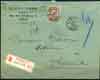 N°74 et 77 pour un affr. de 45 c., rec. double port, sur lettre (petit manque) obl. agence n°49 le 29 oct. 1909. TB. |