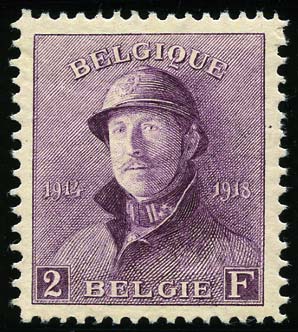 N°177 -5 fr. amarante-, coin de feuille. Superbe. Certificat Soeteman. COB. 300 euros. |