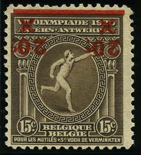 N°186-Cu, -20 c. sur 15 c. brun-, surcharge renversée. Superbe. COB. 1350 euros. |